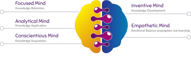 PENTEMIND – The Learning Minds™ is an innovative early learning framework built around five essential minds: Conscientious, Focused, Inventive, Analytical, and Empathetic. Rooted in holistic development, our approach blends traditional values with modern educational practices to nurture creativity, curiosity, and core life skills. Each child is encouraged to explore, express, and grow in a supportive and inclusive environment. Through engaging activities and thematic learning, we aim to build confident, compassionate, and future-ready individuals. At PENTEMIND, learning goes beyond academics; it’s about growing minds with purpose, passion, and heart.